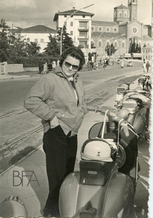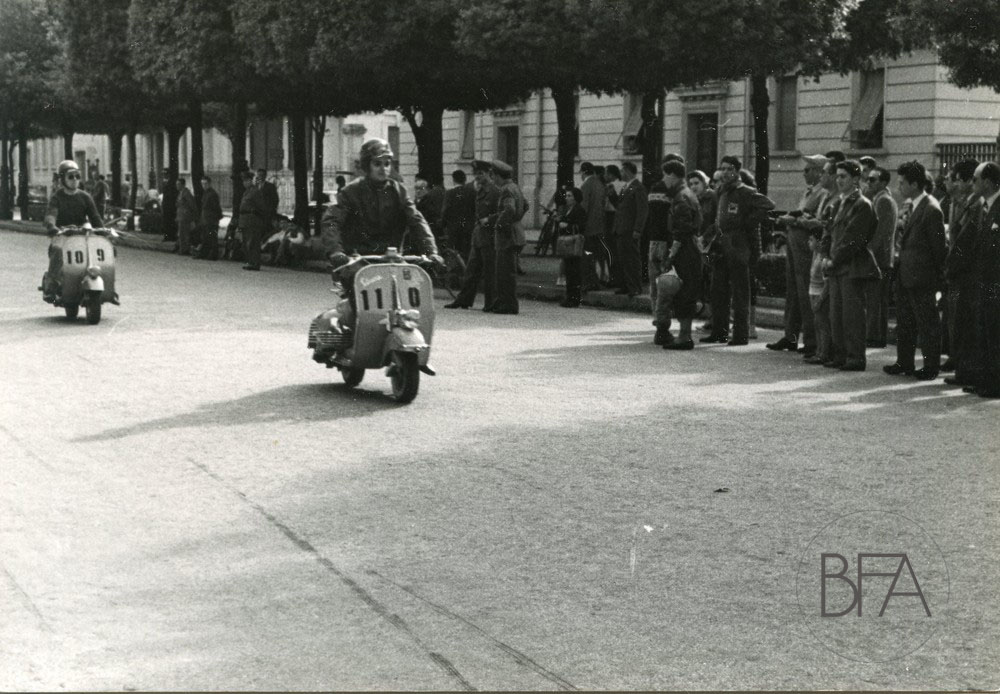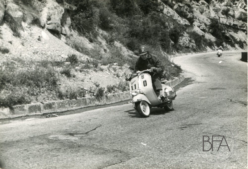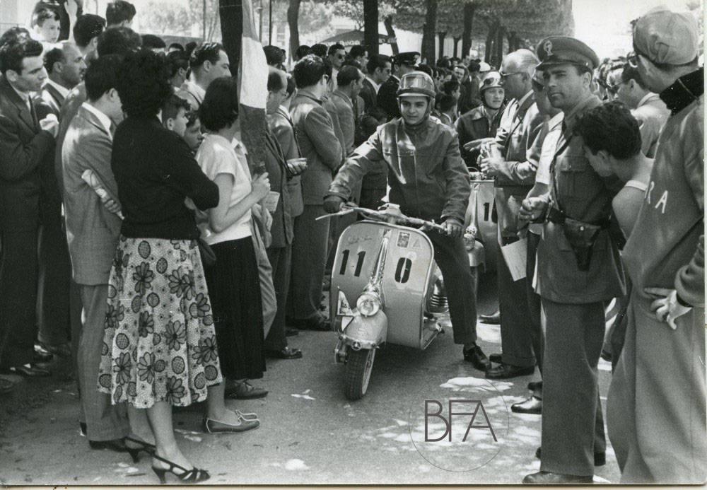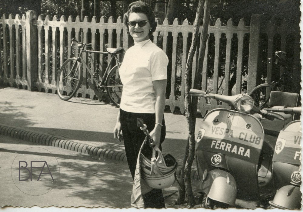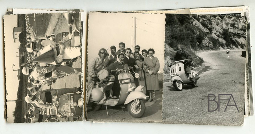 Vespa Club Ferrara, rallyes, time-trial and scooterist portraits. Lot of twenty photographic prints on single coated paper. Excellent conditions 1955 ca. biggest 10 x 15
