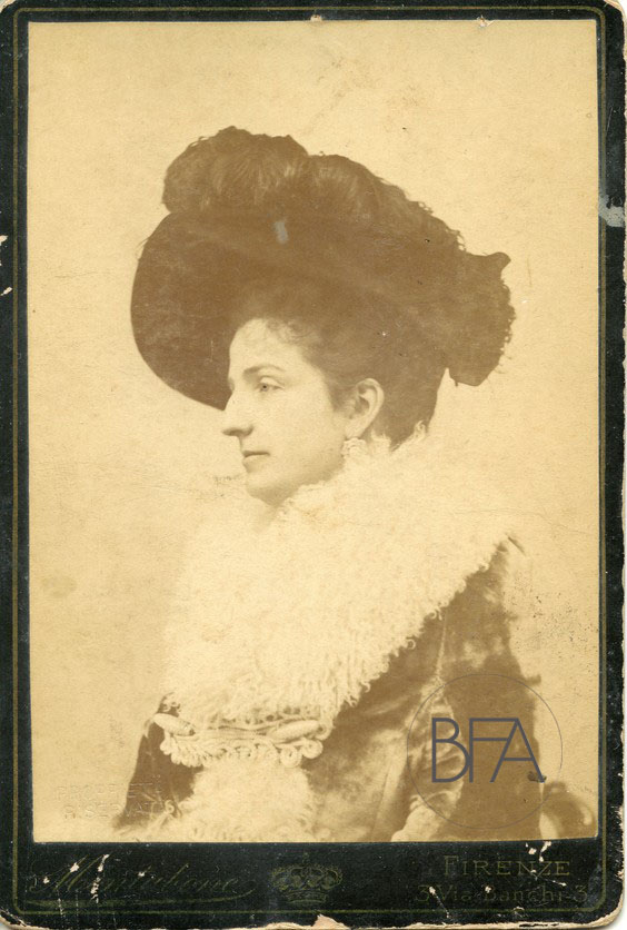 Portrait of Elena di Savoia by Montabone. Albumen print applied on black cardboard. Photographer's logo on front and back. Some scatches 1900 10,5 x 15,5