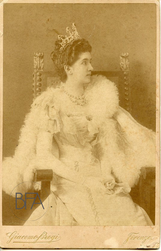 Portrait of Elena di Savoia by Giacomo Brogi. Albumen print applied on black cardboard. Photographer's logo on front and back. Very good conditions 1890 ca. 13,5 x 20,5