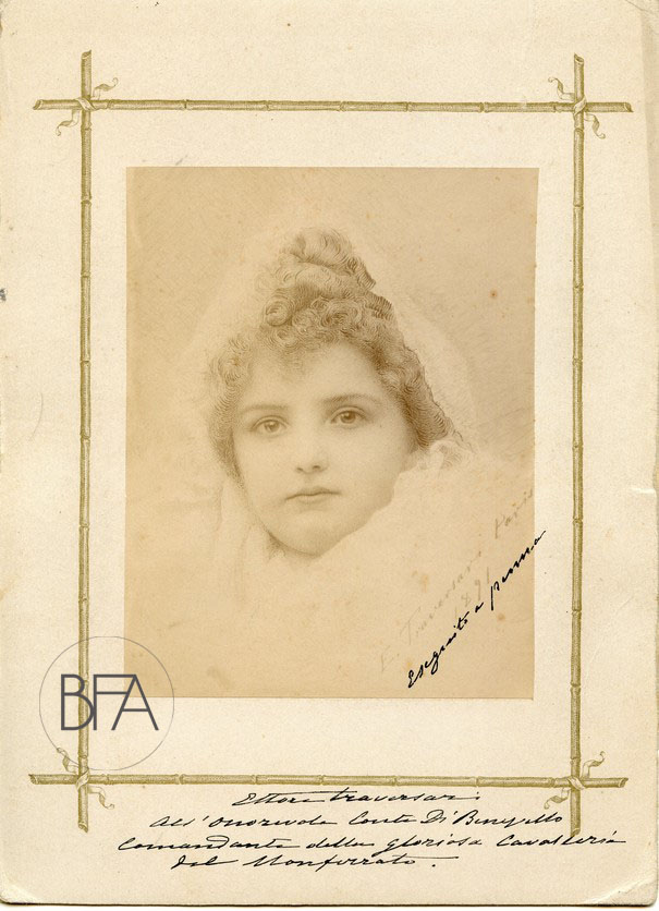 Signed paint reproduction by Ettore Traversari with dedication. Albumen print applied on cardboard, very good conditions 1926 ca. 19 x 24