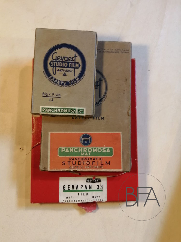 Lot of three Gevaert film boxes. 1950-1970 ca.