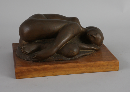 Mario Carotenuto. Nudo sdraiato. Fusione in bronzo su base in legno, firmata in basso. cm12x28x18