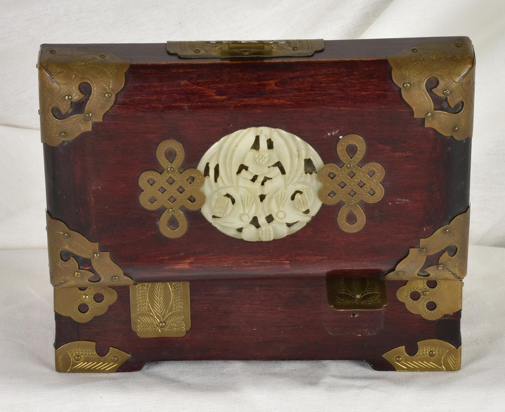 SCATOLA CINESE PORTAGIOIELLI in legno con inserti in ottone, finemente...