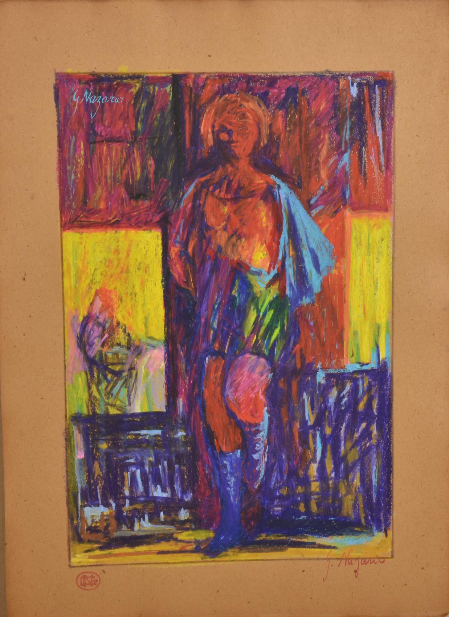 Gaudenzio Nazario L'ATTESA pastelli su cartoncino, cm 71x51,5 firma e timbro...