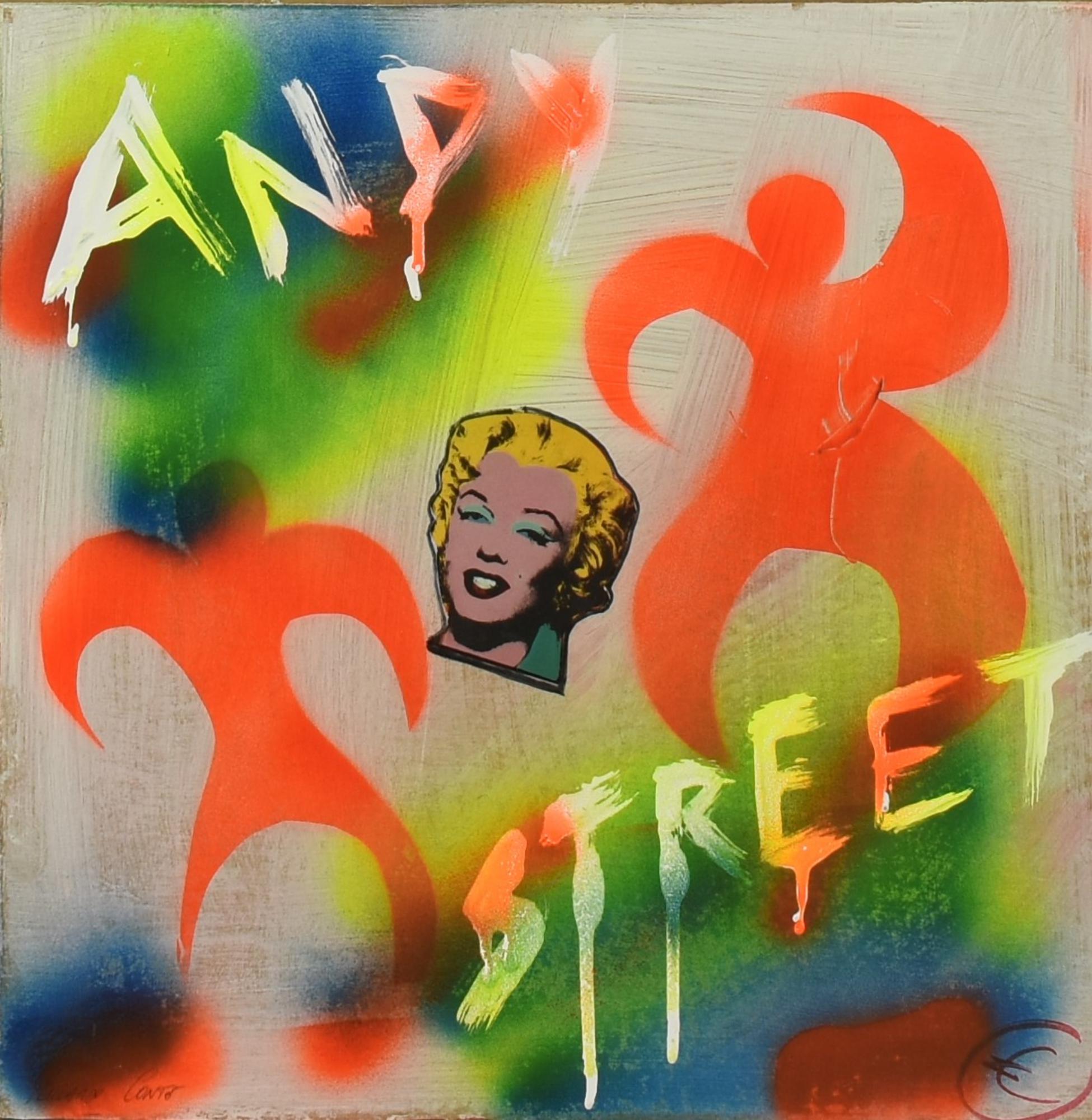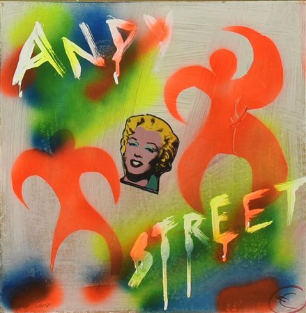 Riccarco Conte ANDY STREET spray e collage su faesite, cm 40,5x40,5 firma e...