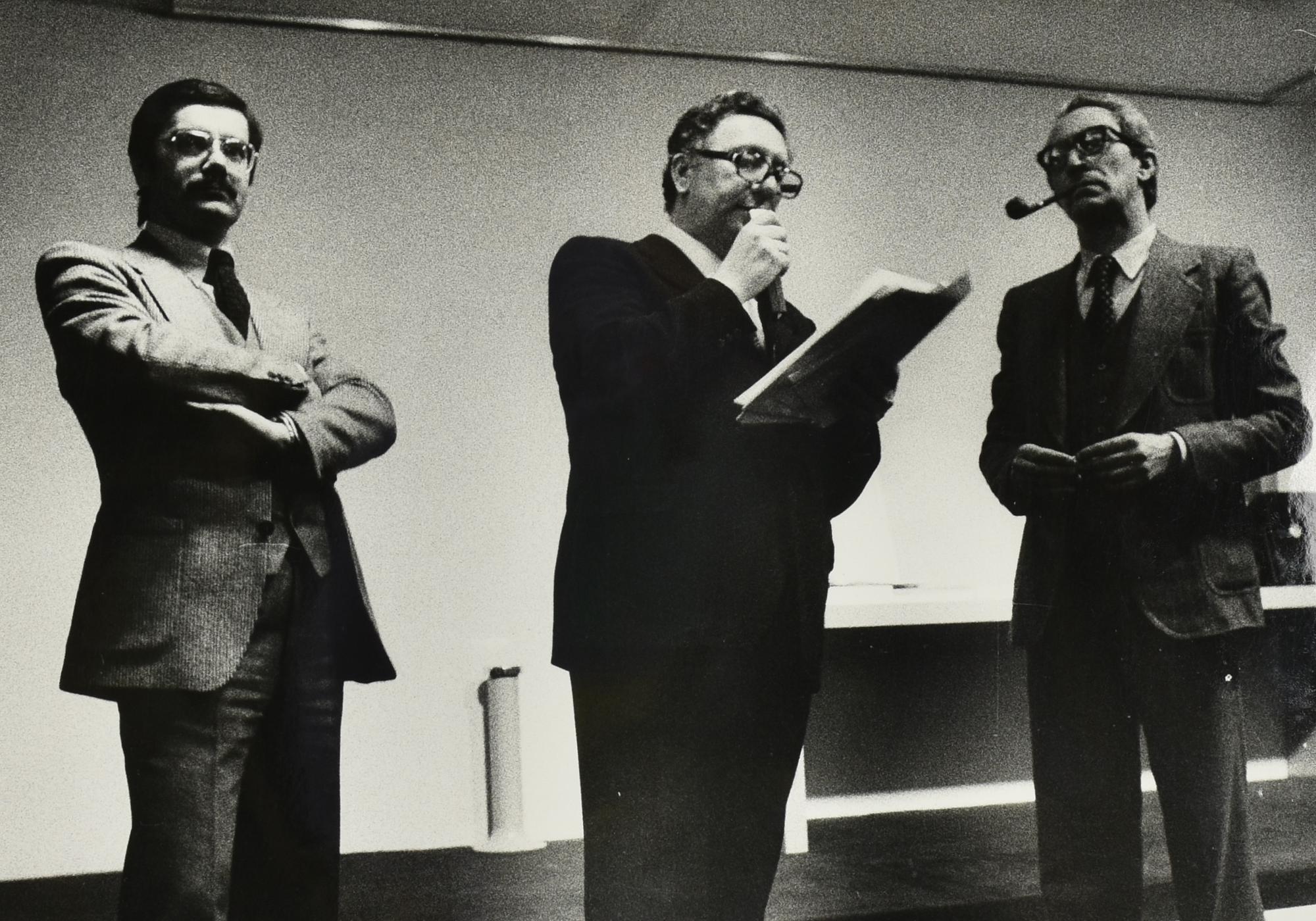 Maria Mulas FRANCO PASSONI DURANTE UNA PRESENTAZIONE fotografia, cm 21,5x30...