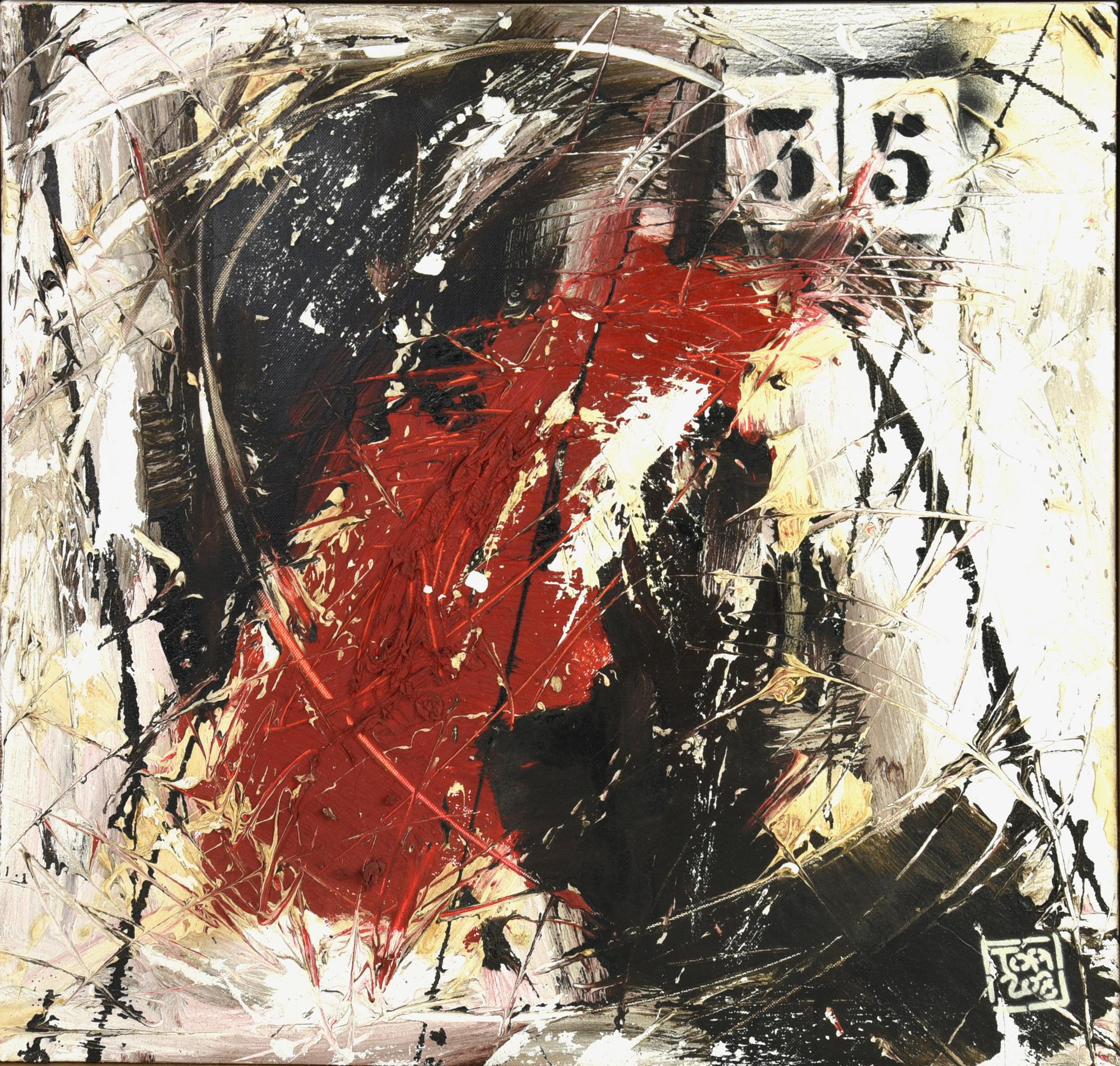 Filippo Maria Topi COMPOSIZIONE acrilici, sabbia e spray su tela, cm 60x60...