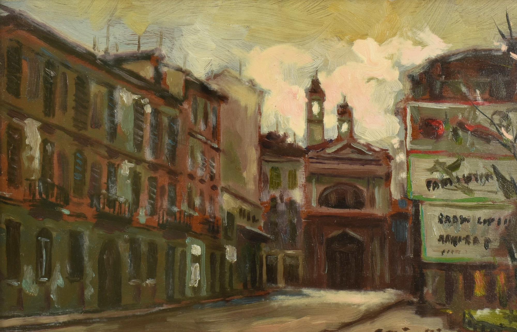 Willie Senigallieri MILANO LA VITTORIA olio su tavola, cm 20x30 firma sul...