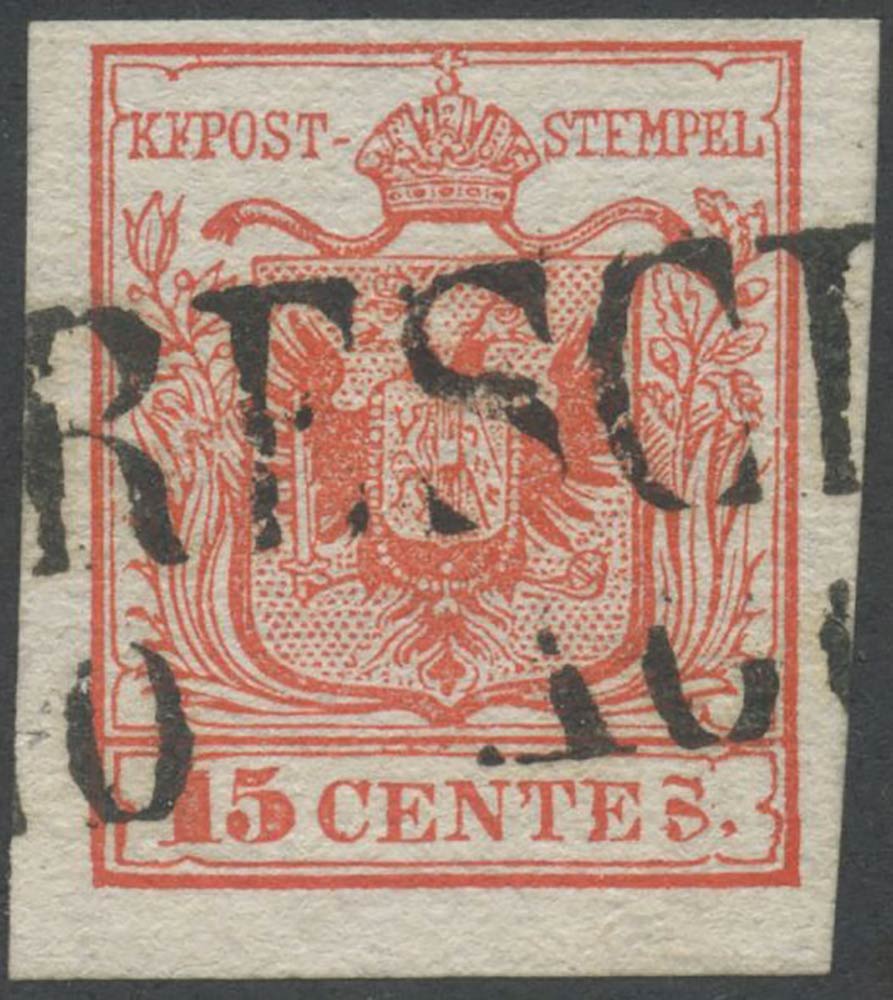 1850, 15c. N.3 Rosso con la 'S' di 'CENTES' deformata. (A+) (Cat.--)