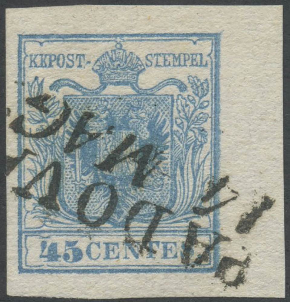 1850, 45c. N.10 Azzurro bordo di foglio a destra, usato. (Lux) (Cat.100++)