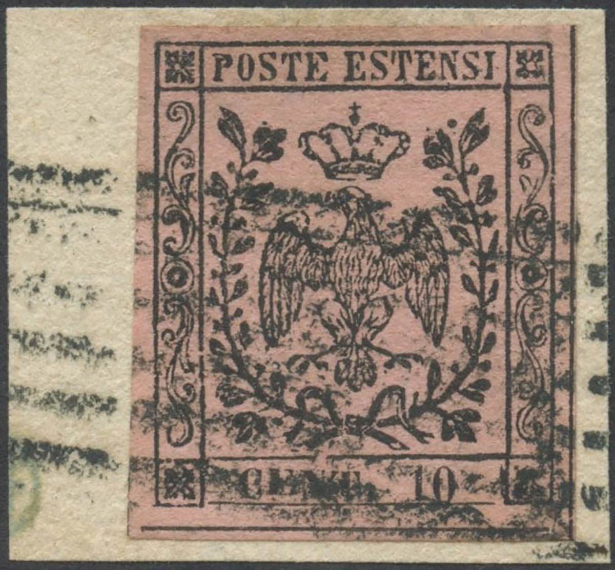 1852, 10c. N.2 Rosa su frammento. (Lux) (En. Diena,, Raybaudi) (Cat.180++)