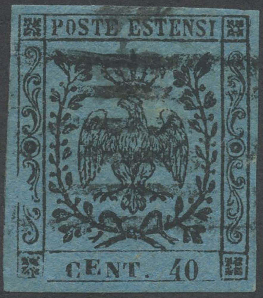 Lot 86 | 1852, N.5 celeste con varietà ''E'' spostata in alto. Varietà descritta e...