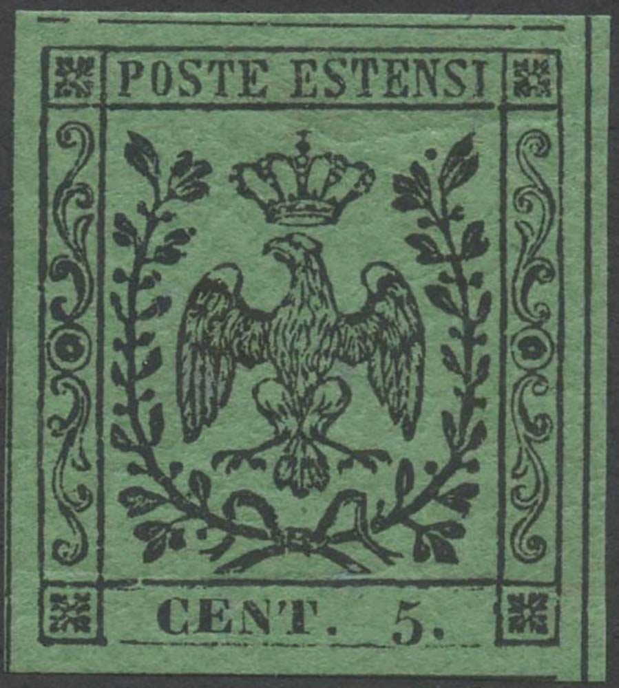 1852, 5c. N.7 Verde nuovo con gomma integra. (A+) (Cat.160)
