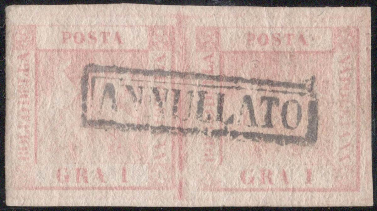 Lot 138 | 1858, N.3 rosa chiaro in coppia orizzontale, usato. (A+) (Cat.175)