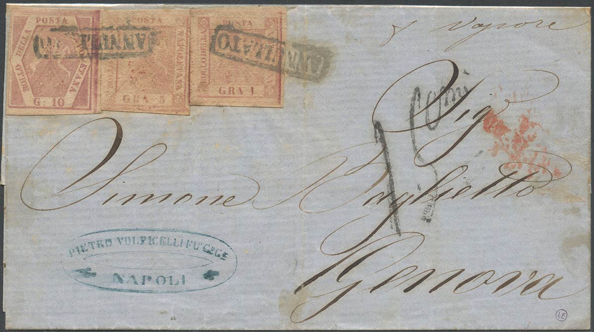 Lot 172 | 1858, Lettera da Napoli per Genova viaggiata via di mare, affrancata per...