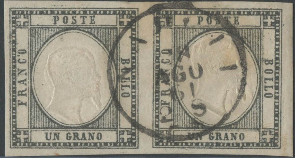 1gr Nero (tendente al grigio verdastro scuro) in coppia, Entrambi con doppia effige, uno dei quali con effigi ben distanziate ed impresse. (A+) (Cat--)