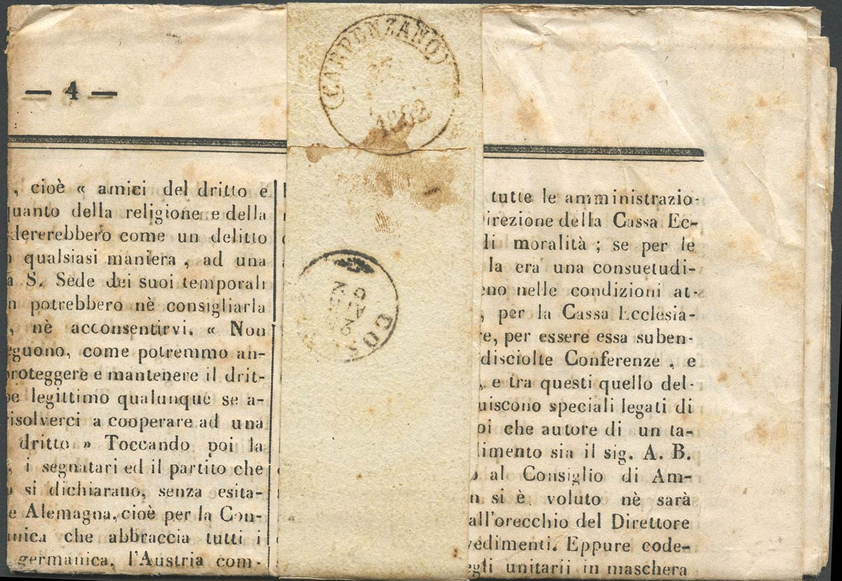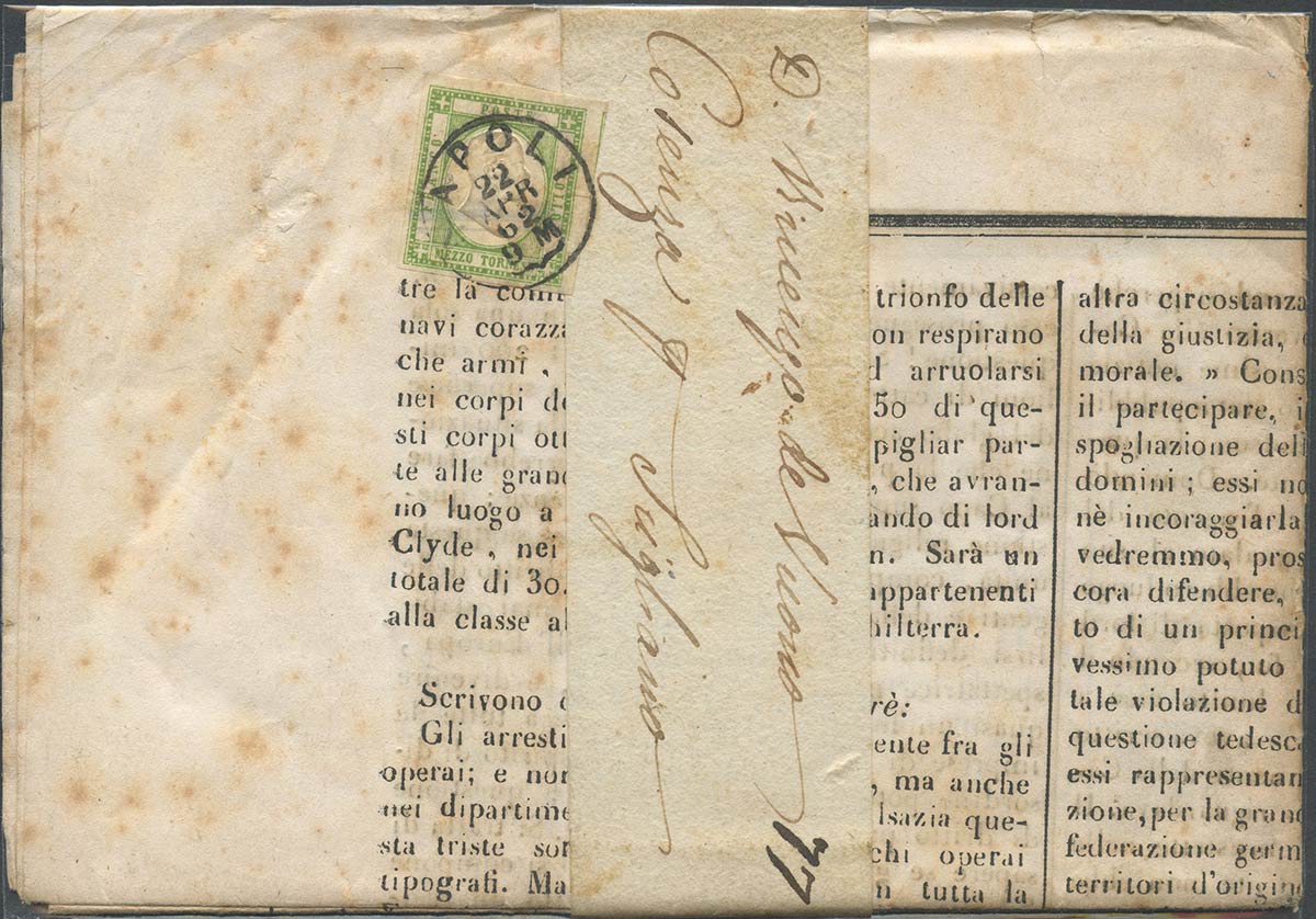 Lot 198 | 22.04.62, Giornale affrancato con un 1/2 Tornese N.17a Verde Giallo Chiaro....