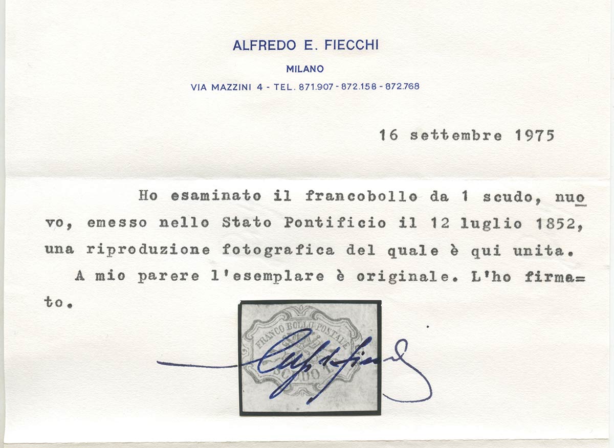 1852, 1sc. N.11 Rosa Caminio angolo di foglio nuovo con gomma, linguellato. (A) (A. Diena, E. Diena, A. Bolaffi, Vaccari, Cert. Fiecchi) (cat. 7.000++)