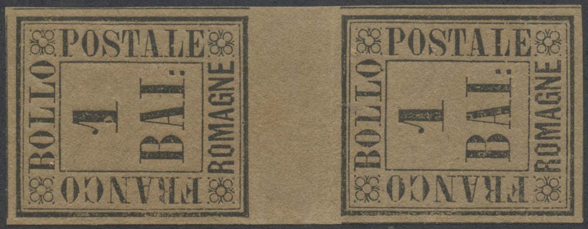 1859, 1b. N.2 Bruno Grigio in coppia con interspazio di gruppo, nuova con...