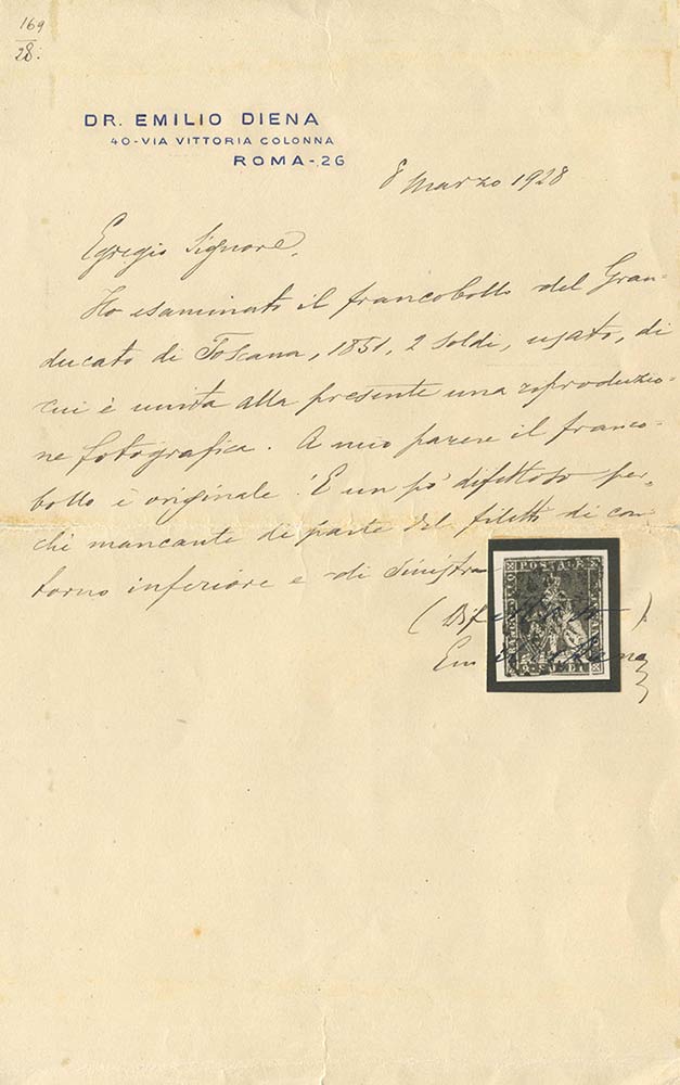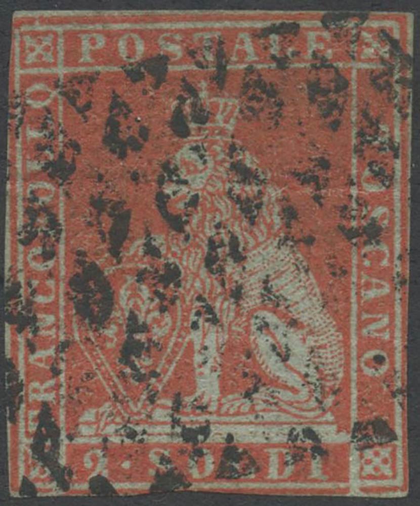 1851, 2s. N.3 Scarlatto su Azzurro, usato. (B) (Cert. E. Diena) (Cat.15.000)
