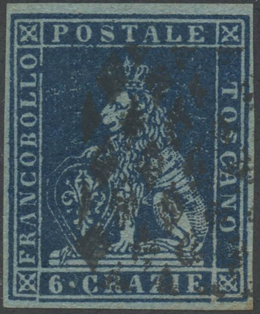 1851, 6cr. N.6c Azzurro Scuro su Azzurro, usato. (A+) (A. Diena) (Cat.650)