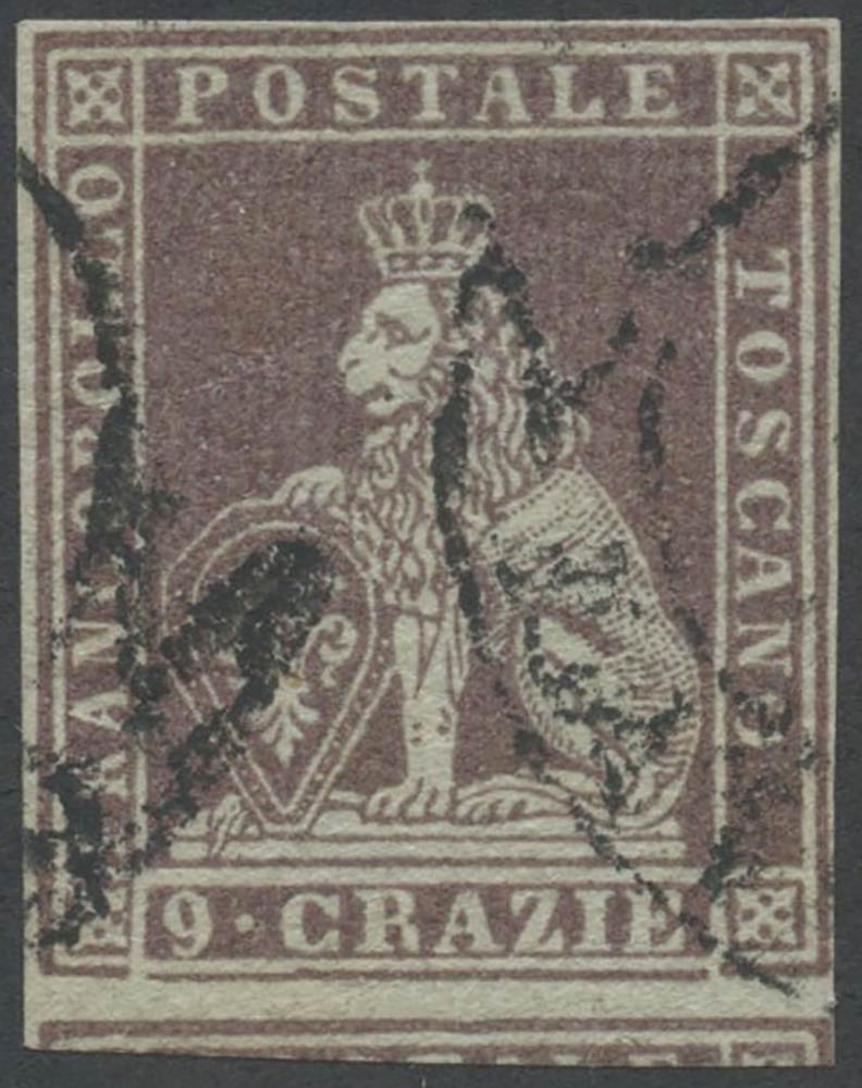 1851, 9cr. N.8 Bruno Violaceo Chiaro su Grigio. (A+) (A. Diena) (Cat.450)