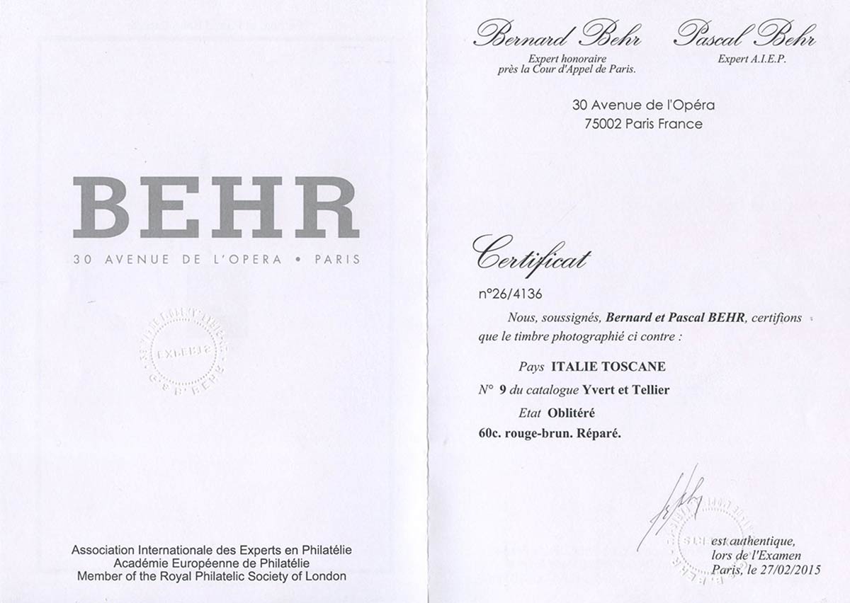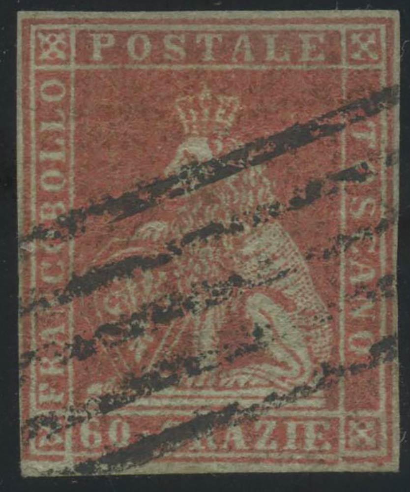 1851, 60cr. N.9 Carminio Cupo su Grigio. francobollo riparato. (C) (Cat.50.000)