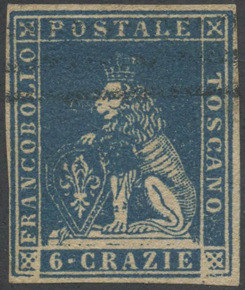 1857, 6cr. N. 15b Azzurro Cupo, usato. Interessante D.C. (A+) (Cat.450++)