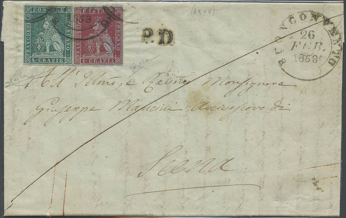 26.02.1853, Lettera da Buonconvento per Siena affrancata per 5cr. Tramite un...