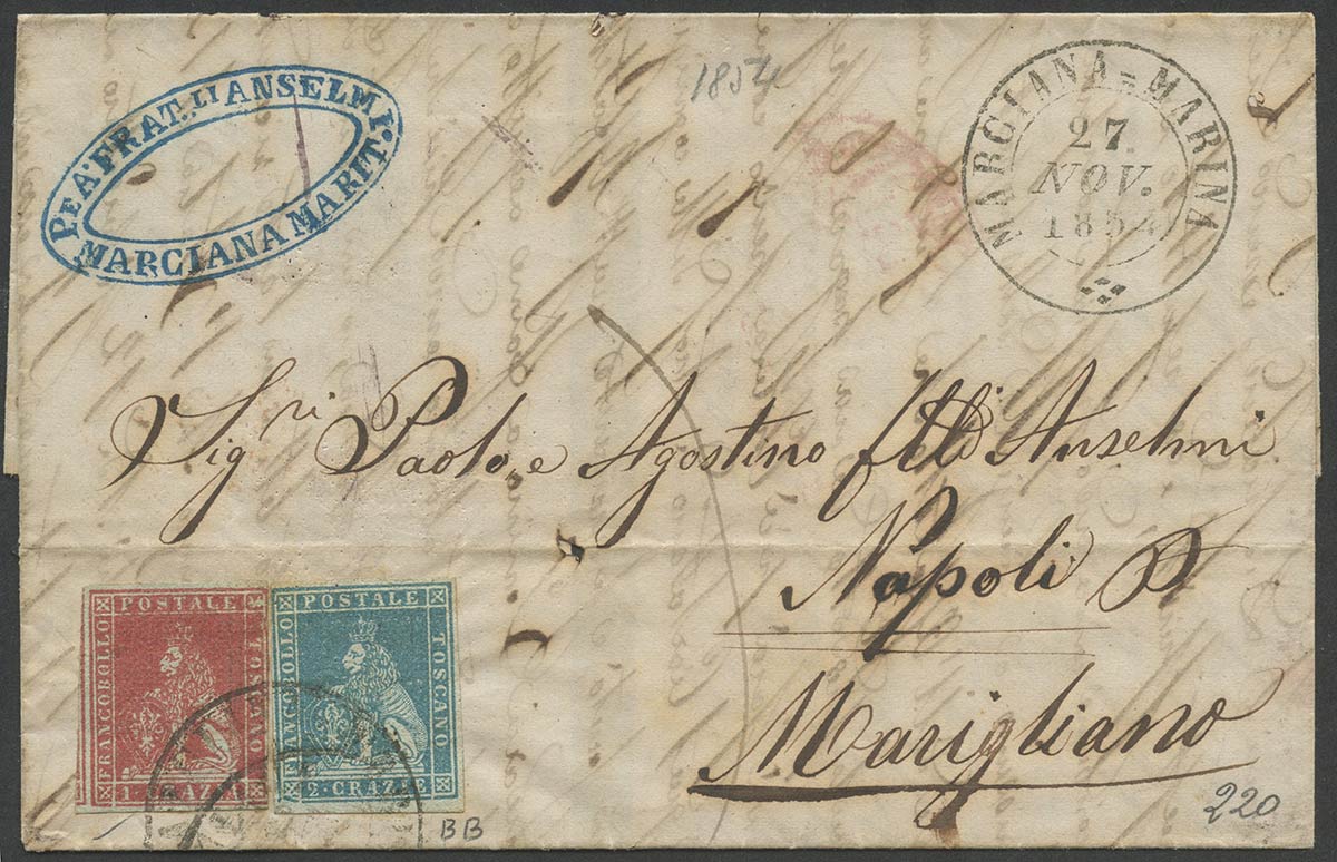 Due interessanti lettere di toscana, Una da Marciana Marina per Napoli con al...
