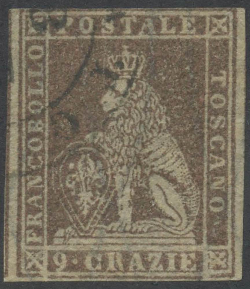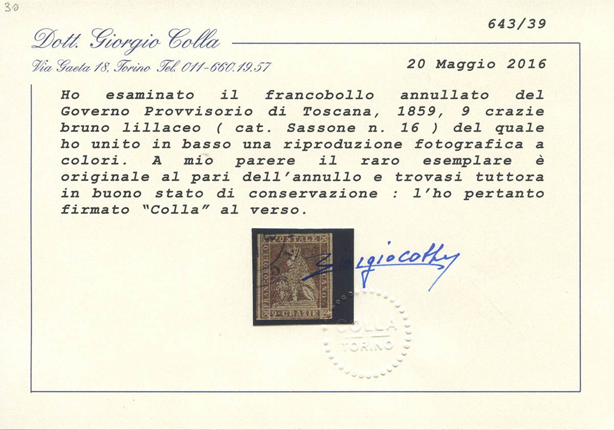 1859, 9cr N.16a Bruno grigio Lillaceo, usato. (B) (Cert.Colla) (Cat.11.000)