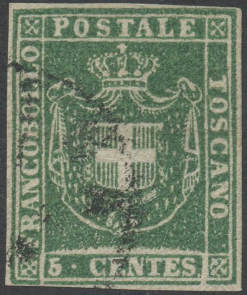 Previous Lot 321 Next Bertolami Fine Art - Piazza Lovatelli 1, 00186 Roma WEB AUCTION 104 - FILATELIA Filatelia Thursday 30 September 2021 hours 14:00 (UTC +01:00) 1860, 5c. N.18 verde, usato. (A+) (Oliva) (Cat.400) 1860, 5c. N.18 verde, usato. (A+) (Oliva) (Cat.400)