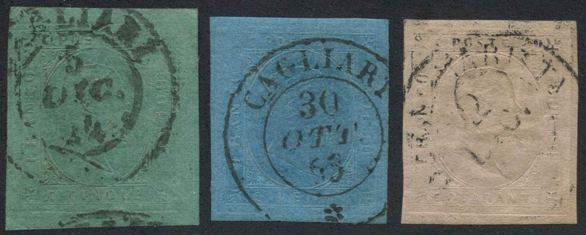 1853, N.4/6 usati di ottima qualità, il N. 4 di qualità Lusso e certificato. (A+/Lux) (cert. A. Diena per il N.4) (Cat.4.250++)