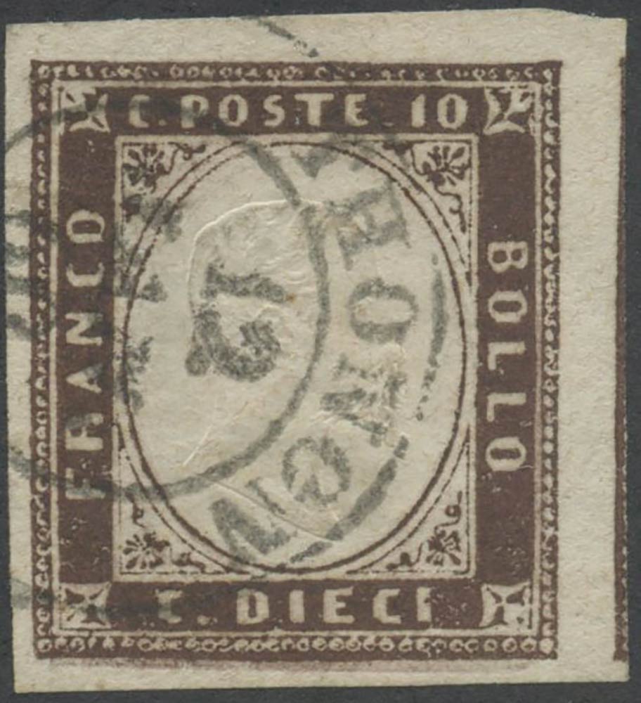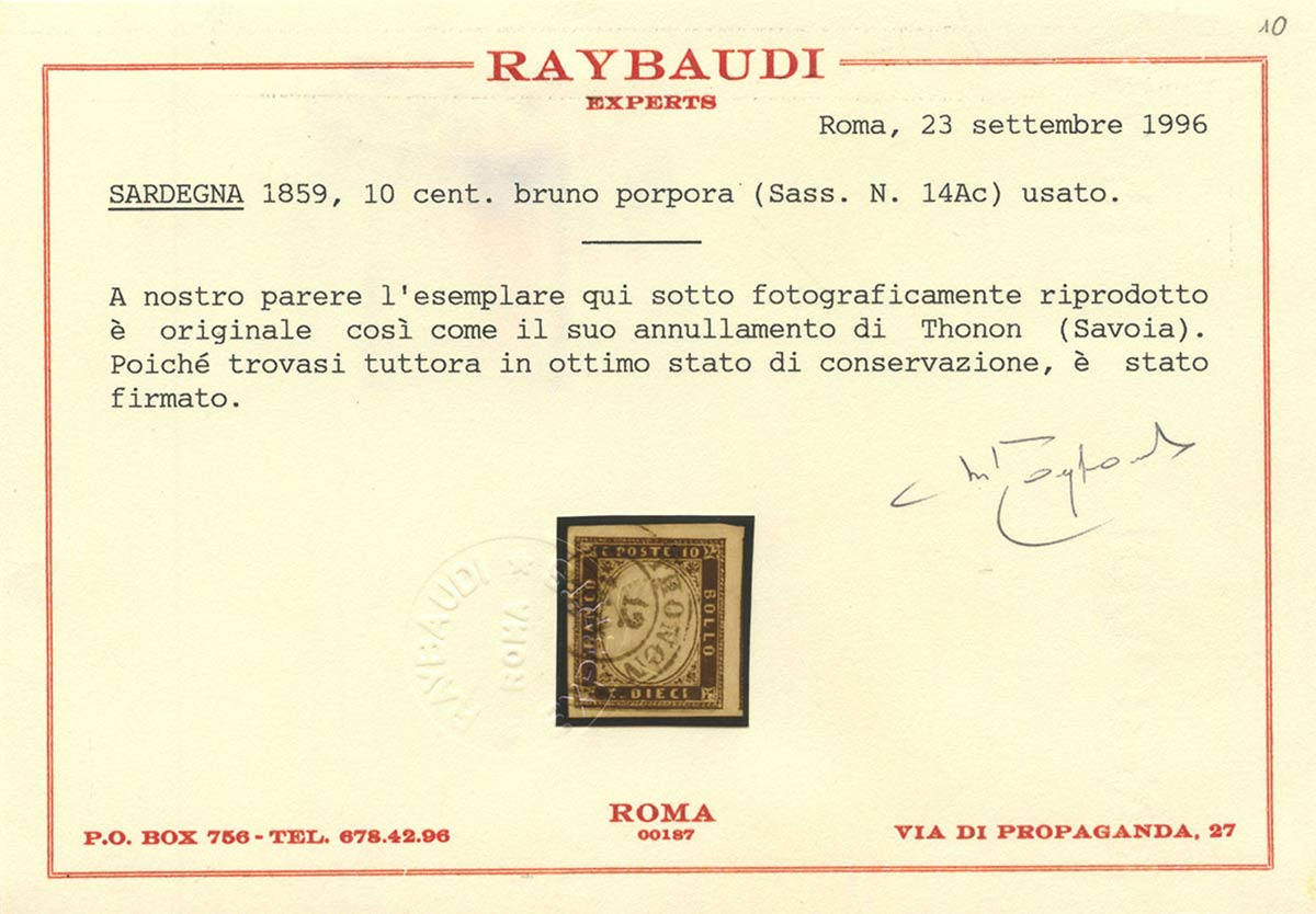 1859, 10c. N14Ac Bruno Porpora, usato. (Lux) (Caffaz, Cert. Raybaudi)(Cat.1000)