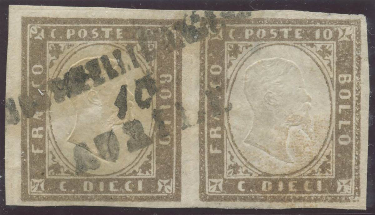 1860, Coppia di 10c. N.14B Bruno Grigio Olivastro annullata con il Lineare su...