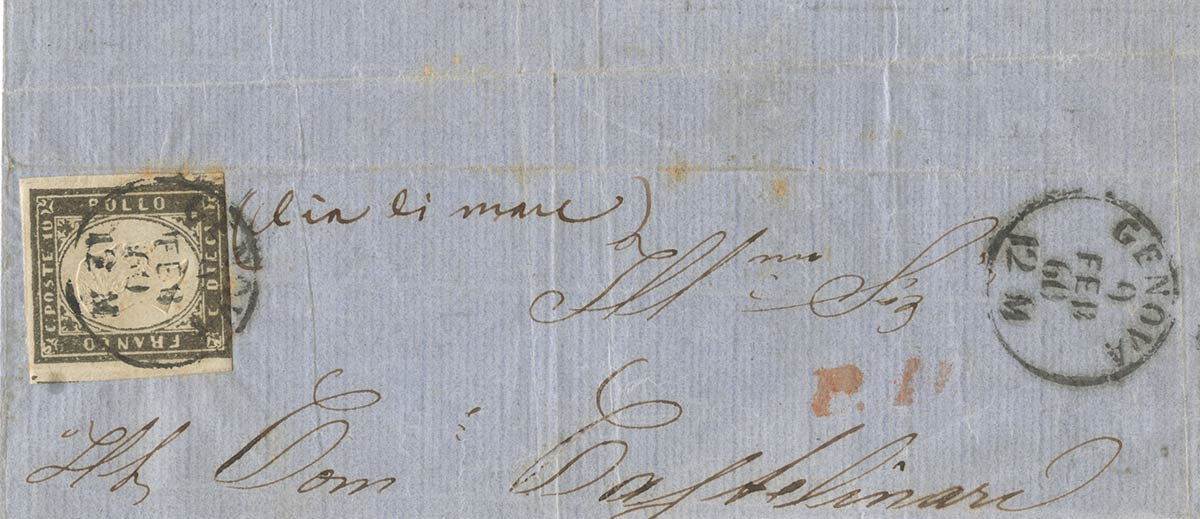 09.02.1860, Grande frammento di lettera affrancata con un 10c.(probabile...