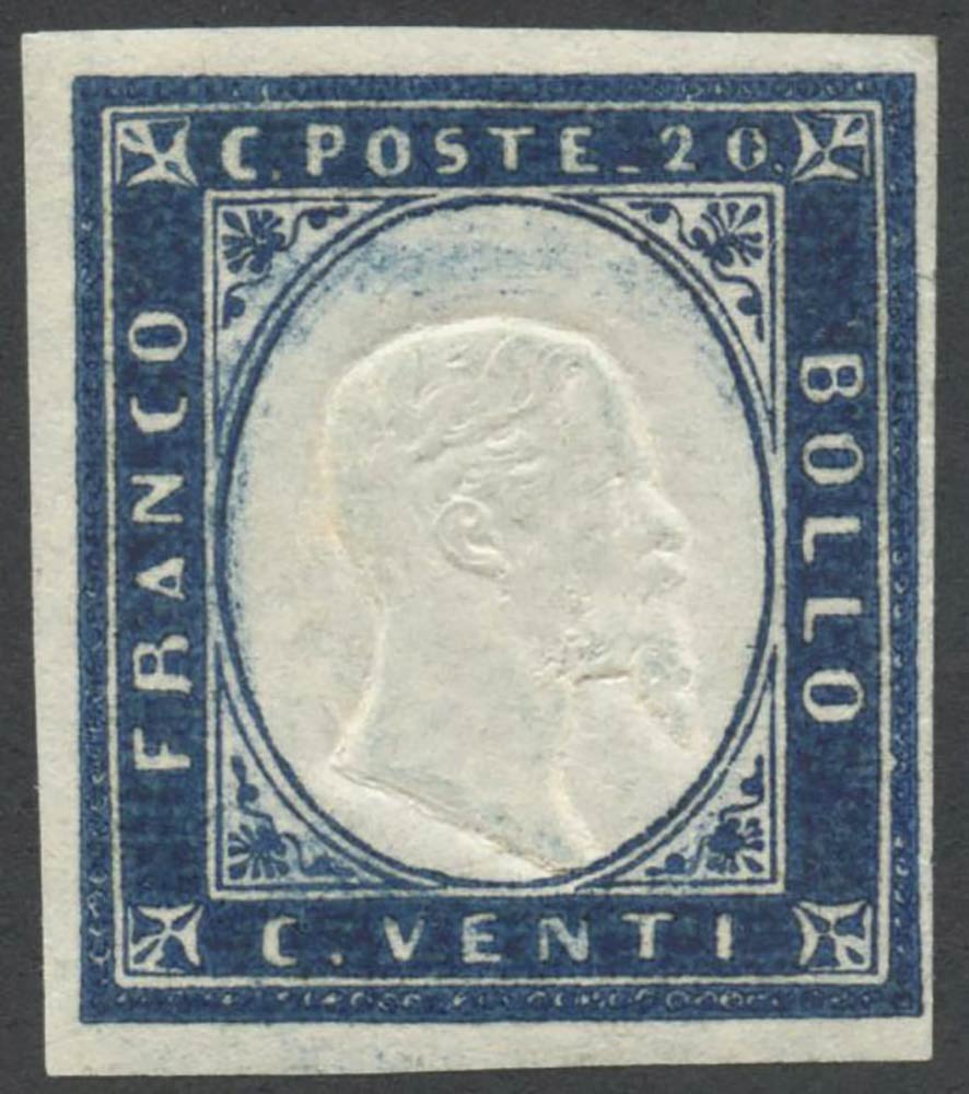 1861, 20c. N.15Dc Azzurro Oltremare (Rattone N.29d Azzurro) nuovo con gomma integra. (Lux) (Cat.5.000)
