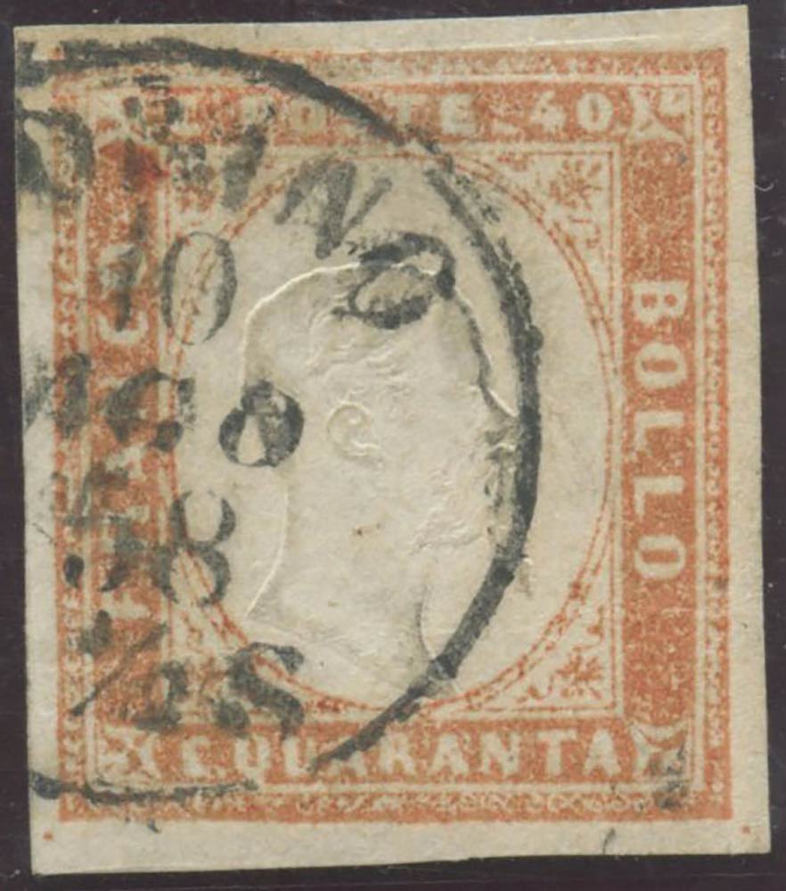 1858, 40c. N.16Ab Vermiglio Arancio Chiaro (tonalità chiarissima), usato. (A+) (Cat.200++)