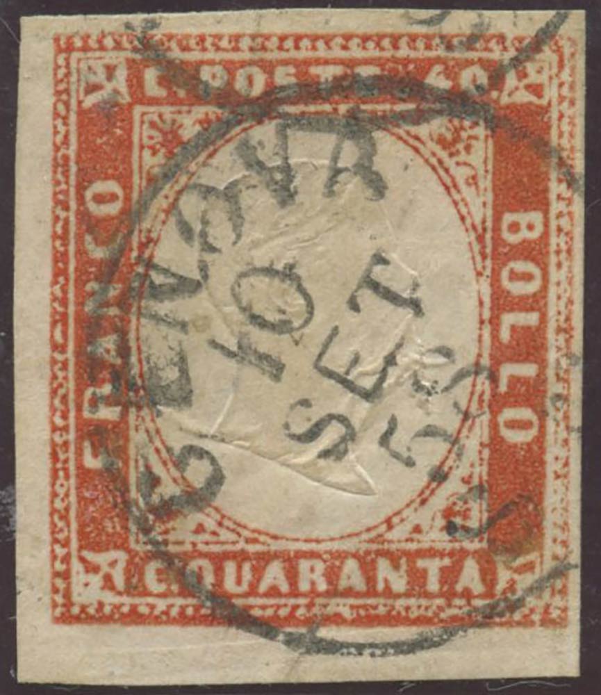 1858, 40c. N.16Ac Vermiglio Arancio, usato. ((A) (Oliva, Colla) (Cat.200)