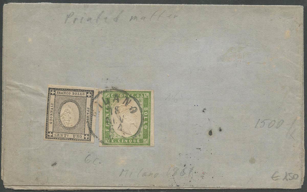 Opuscolo stampato affrancato con 5c. Verde Oliva Chiaro 13Ca + 1c. Nero N.19a. Qualità A