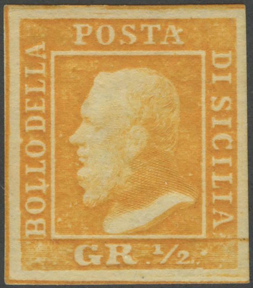 1859, 1/2gr. N.1 Arancio nuovo con gomma, linguellato. (A+) (Chiavarello)...