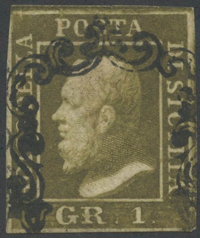 Lot 439 | 1859, 1gr. N. 4a Bruno Oliva Scuro(II tav), usato. (A) (E.Diena, A.Diena)...