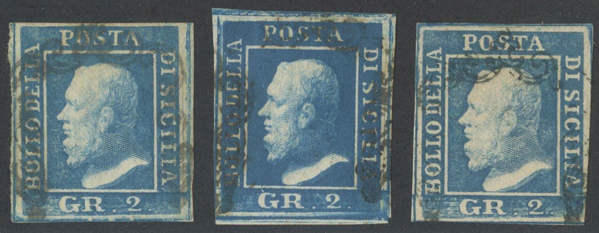 1859, N.8 in tre diverse e interessanti tonalità, ottima qualità. (A+) (Cat.--)