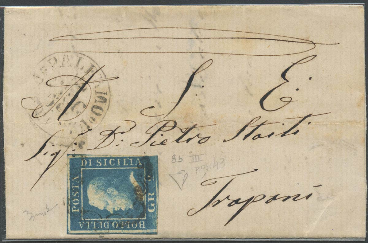 Lettea da Palermo per Trapani affrancata con un 2gr. N.8b Azzurro Verdastro....