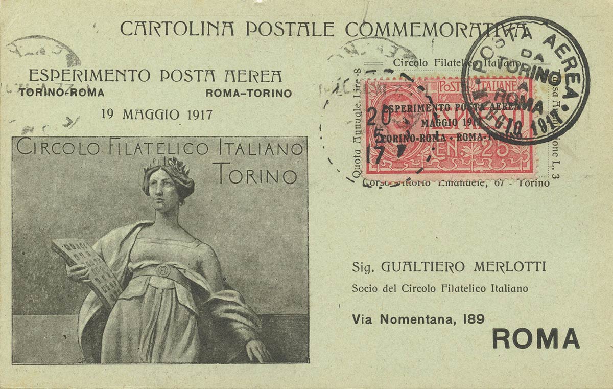 P.A. 25c. Espresso con soprastampa '' Esperimento Posta Aerea Maggio 1917 Torino - Roma, Roma - Torino'' su areogramma. (A) (Cat.--)