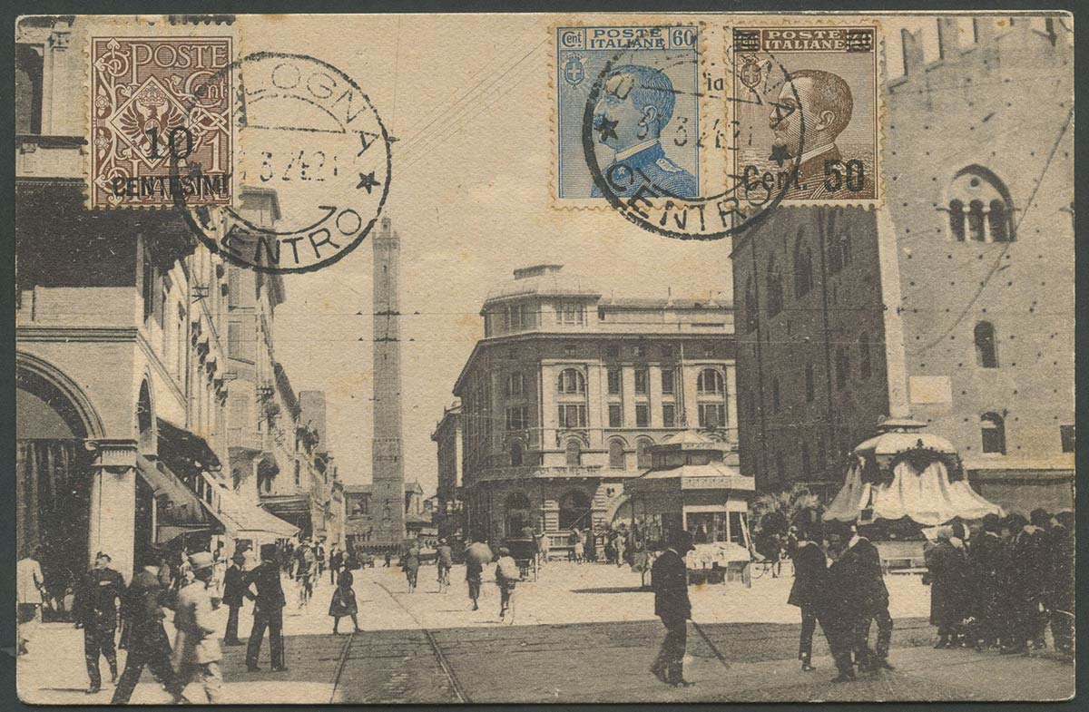 Cartolina affrancata con 10c. Su 1c. Bruno n.137 + 50c. Su 40c. Bruno N.139 + 60c. Azzurro N.157