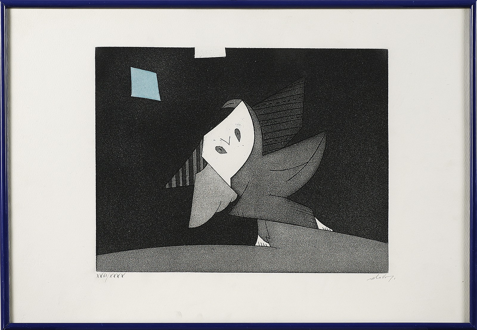 DOVA GIANNI (1925 - 1991) Senza titolo. Acquaforte. Cm 50,00 x 35,00. Tir. XXVI/XXXX e firma in basso a matita. Misure lastra:24,3x31cm. Cornice presente