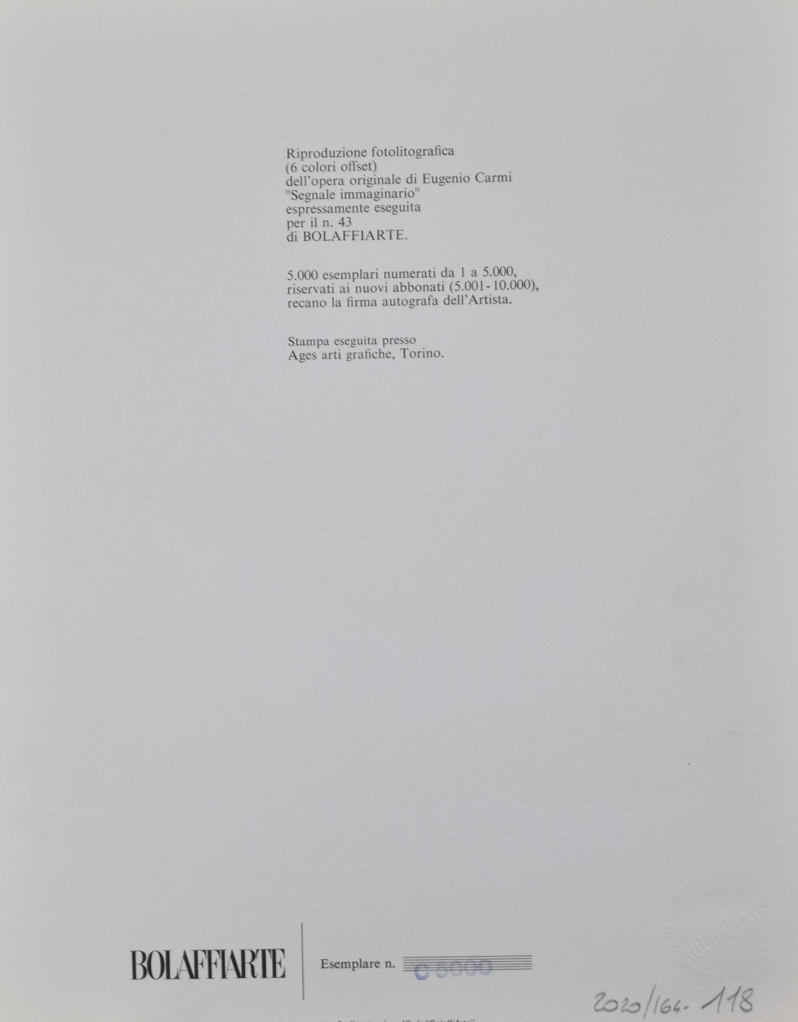Eugenio Carmi SEGNALE IMMAGINARIO riproduzione fotolitografica su cartoncino,...