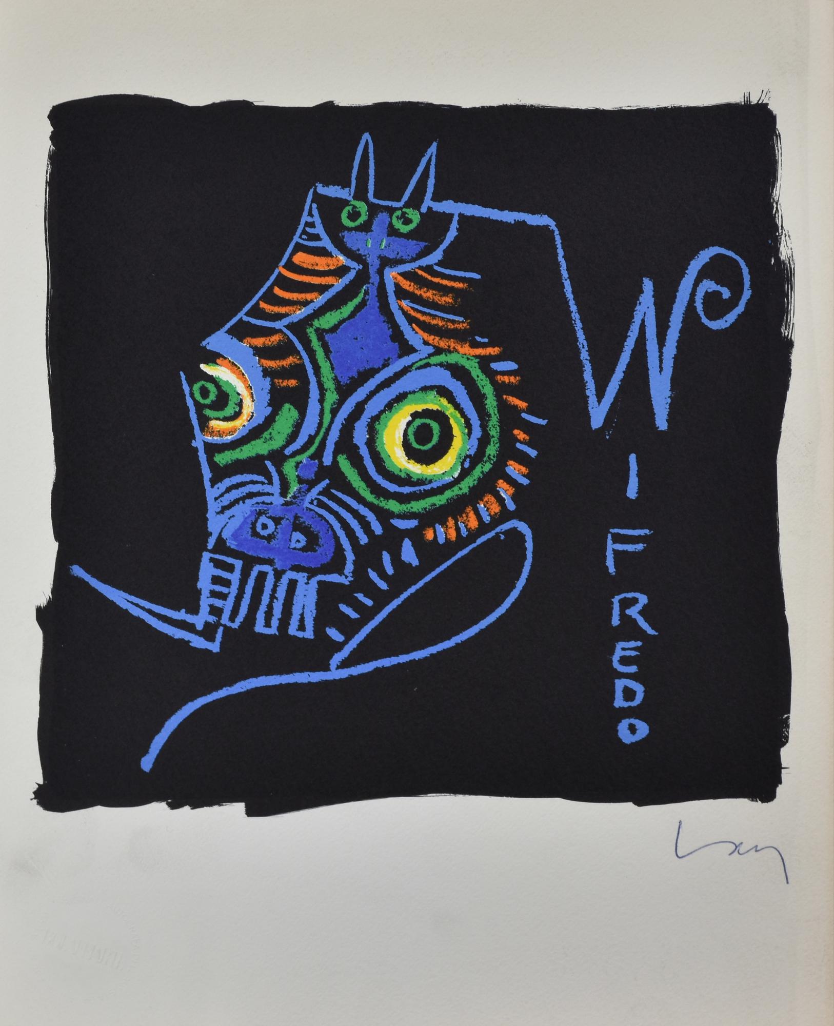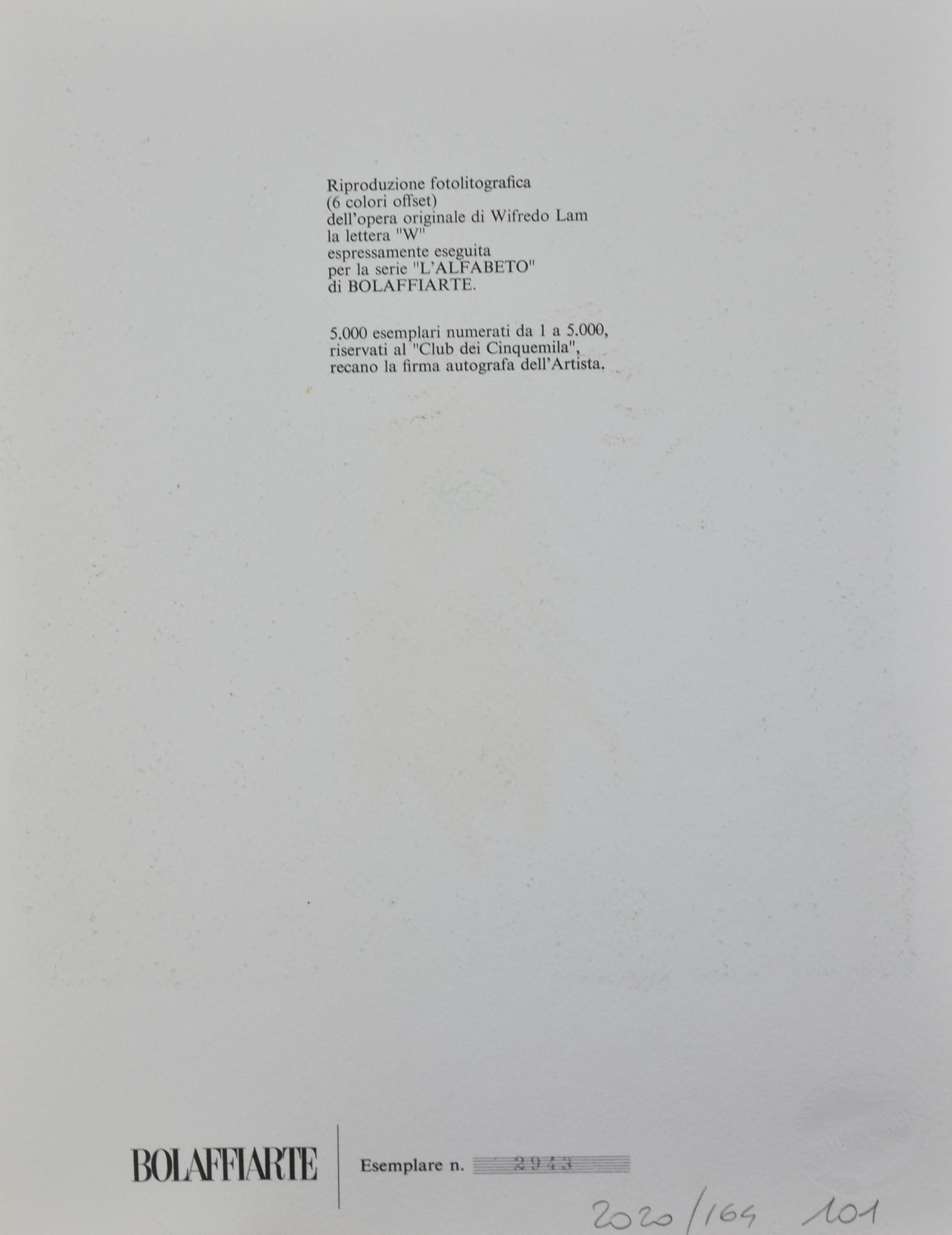 Wifredo Lam LETTERA W riproduzione fotolitografica su cartoncino, cm 30x23,5;...