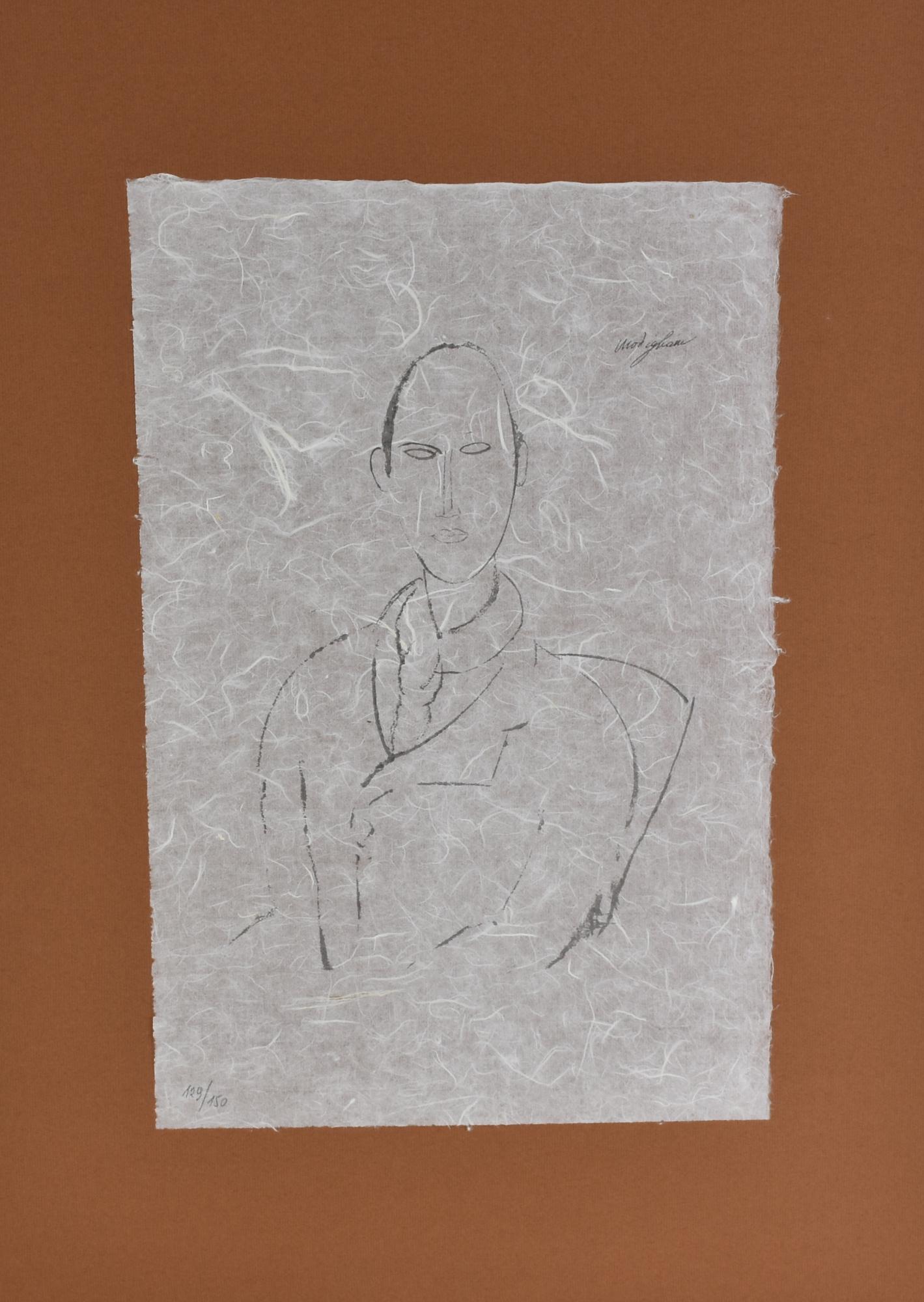 Amedeo Modigliani RITRATTO D'UOMO litografia su carta di riso (d'apres), cm...